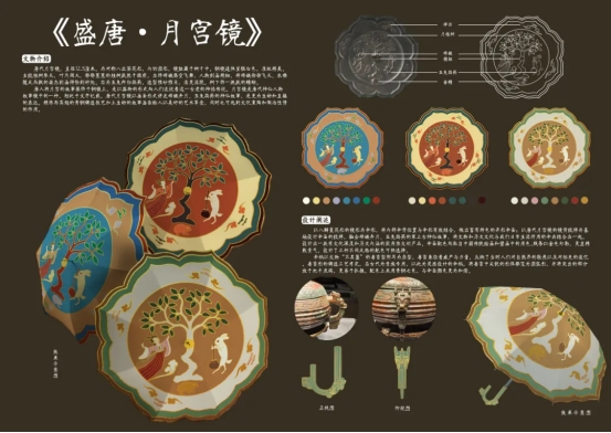 本次获奖的《云汉兽柄伞》,其设计灵感源自我馆馆藏核心文物——盛唐月宫镜。工作人员深度研读文物的造型纹饰、历史背景与文化寓意,提炼出桂树、嫦娥、玉兔、金蝉等核心视觉符号,摒弃过度演绎的创作思路,在坚守文物本真特质的基础上,融入现代生活审美与实用需求。伞柄将文物“不其簋”的兽首型附耳转化为可触摸、可使用的设计语言,既保留了传统文化的厚重感,又通过轻量化材质、便捷功能设计与鲜活色彩搭配,让古老文物摆脱严肃语境,成为兼具装饰性与实用性的日常好物,真正实现“让文物走进生活”的创作初衷 。